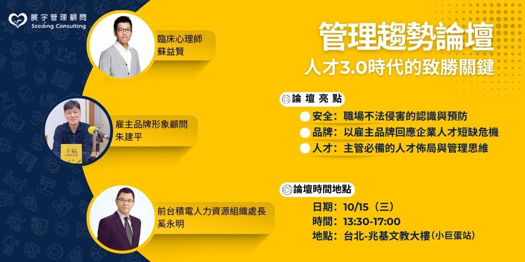 10/15【管理趨勢論壇】人才3.0時代的致勝關鍵:安全、人才、品牌